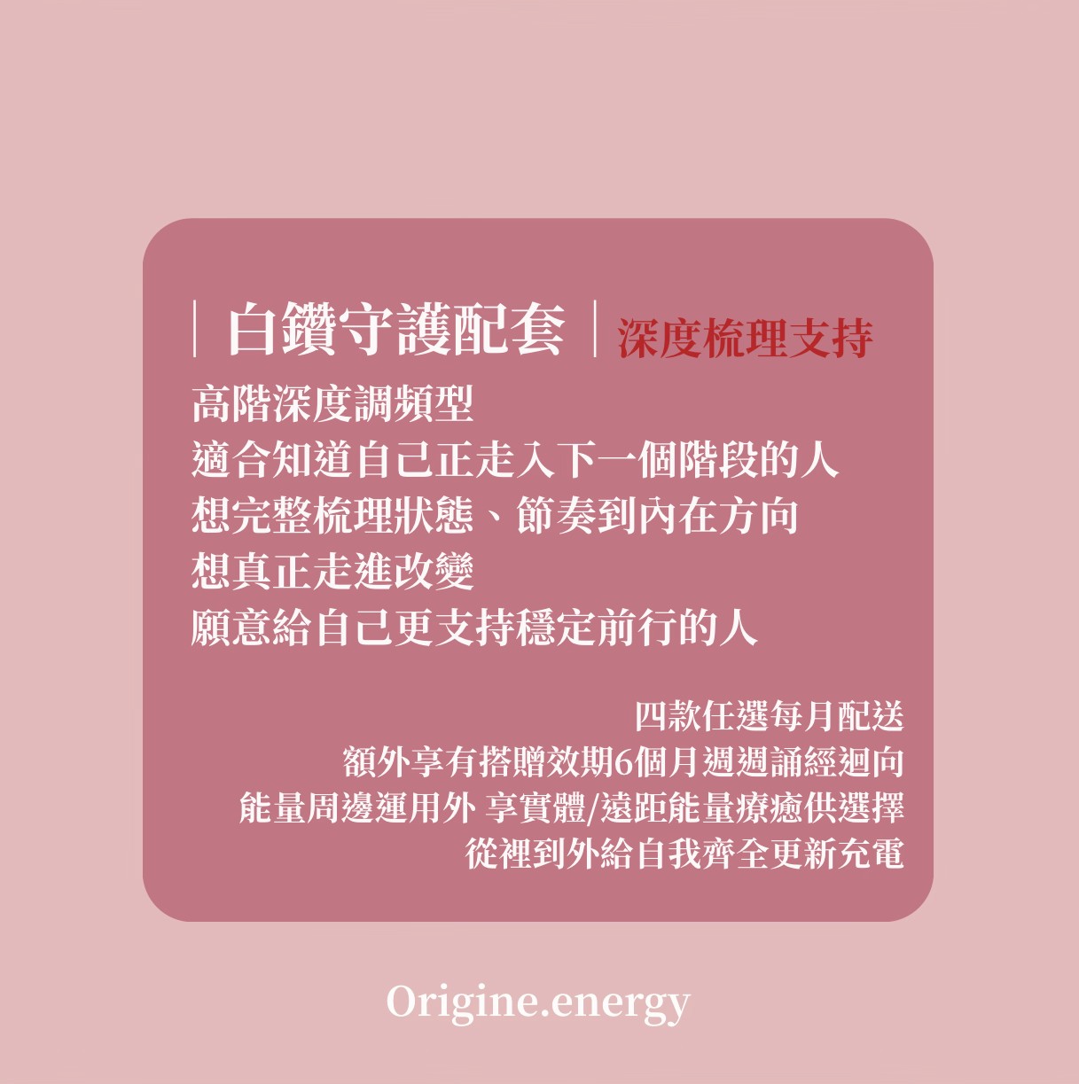 白鑽女主專屬組 內容包含: 聖油海鹽 60 包/每月配送 10 包(最划算) ✨四款皆可任選 贈送: 結界款 8 包、能量香皂 3 塊、能量香片 10 片 譚崔實體療癒 2 次(北/中) Or 每月遠距靈氣共 6 次